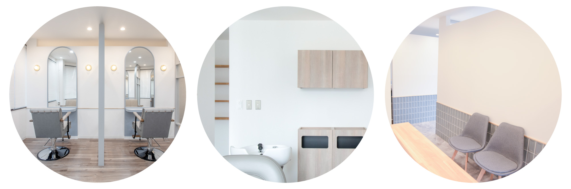 美容室の時間が自分へのご褒美になる様、リラックスした時間を過ごせる工夫をしています。隣の席に仕切りを設けた施術空間で落ち着いて過ごす事ができます。
