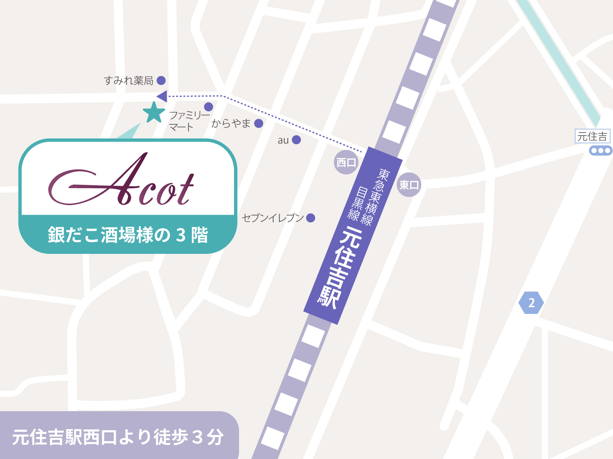 東急東横線/東急目黒線元住吉駅西口ブレーメン通りを進み、銀だこ酒場様の3階です。駅から徒歩3分