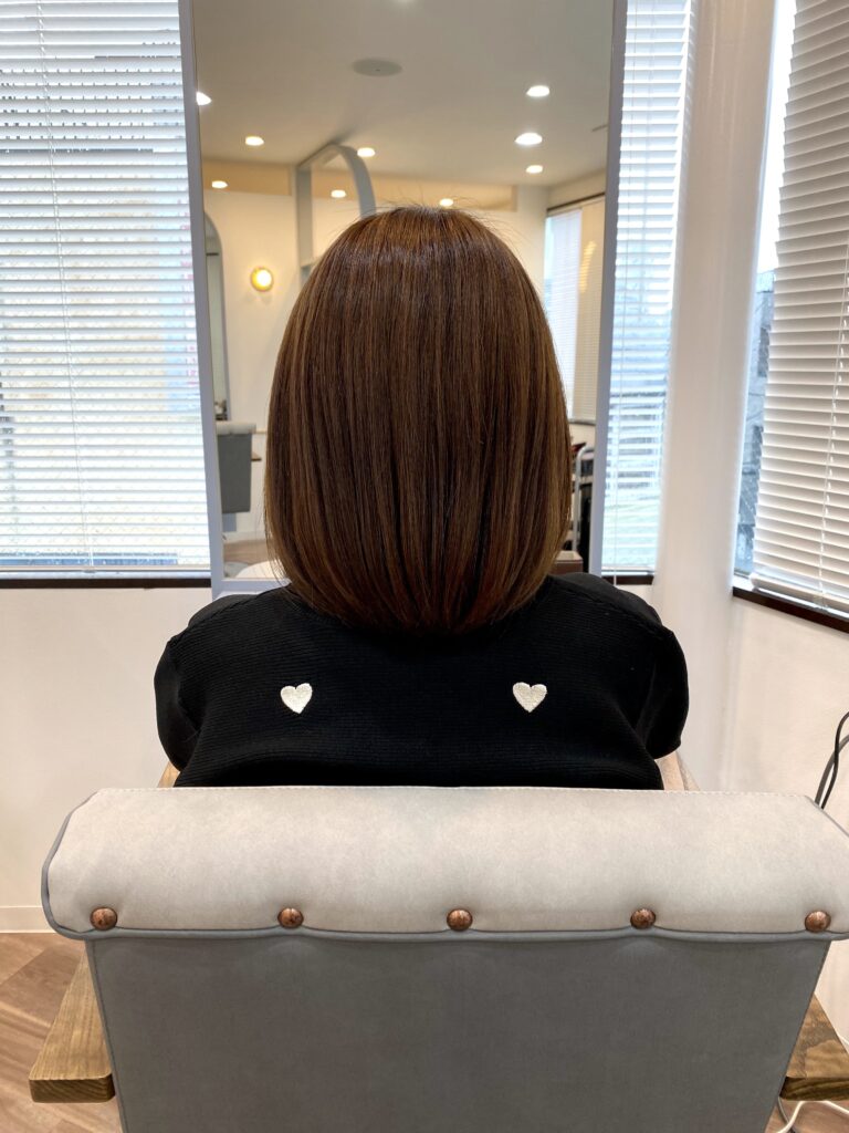 まとまりとツヤのある髪なら、まとめてもOK、外ハネもOK、結んだ時にも天使の輪は健在☆
