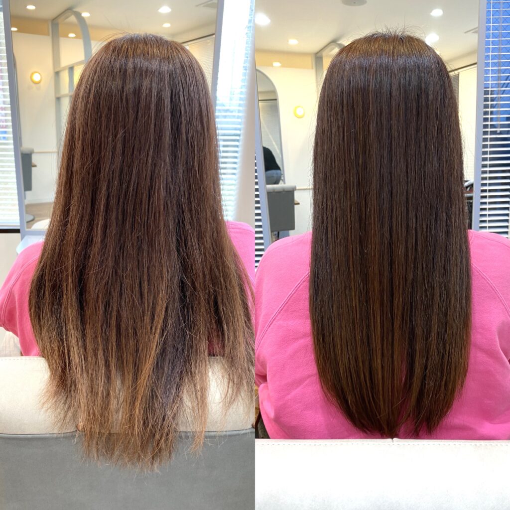 1回の施術でも扱いやすくなりますが、今後はさらに色持ちやツヤが持続する様になります。